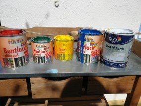 Und das Schöne daran ist, dass wir auch schon von alteingesessenen Kleingärtnern angesprochen wurden, wie schön es ist, dass jemand noch Arbeit in den Garten steckt. Aber schließlich möchte ich es ja auch schön haben 🙂 Ich freu mich sehr darüber, dass es so gut geklappt hat. Nur die dunkelblaue Farbe war ein bisschen klumpig. Das sieht man leider auch ein wenig. Uns stört es aber nicht 😀 In der Zwischenzeit bin ich auch nochmal mit weiß über die Querbalken gegangen.