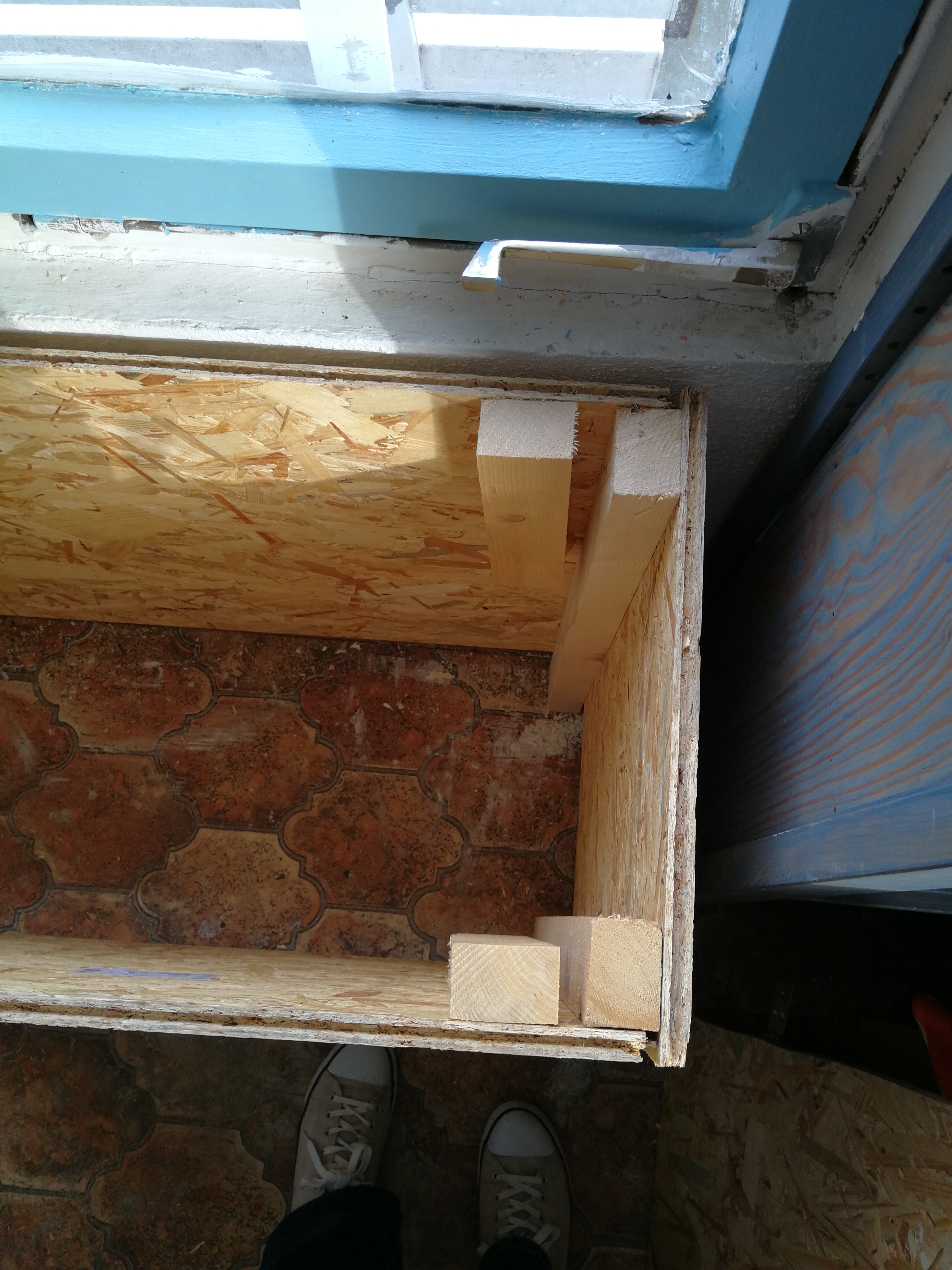 Ich wollte eine Box haben, wo ich oben den Deckel öffnen kann und welche die Lücke zwischen Schrank und Bank beim Fenster schließt. Außerdem habe ich dann eine vergrößerte „Fensterbank“ für büschn Deko oder sowas (Ladekabel sind die Dekoelemente von meinem Mann :D). Die groben Maße hatte ich aufgeschrieben und der Rest ist bei mir ja immer „Building by Doing“.